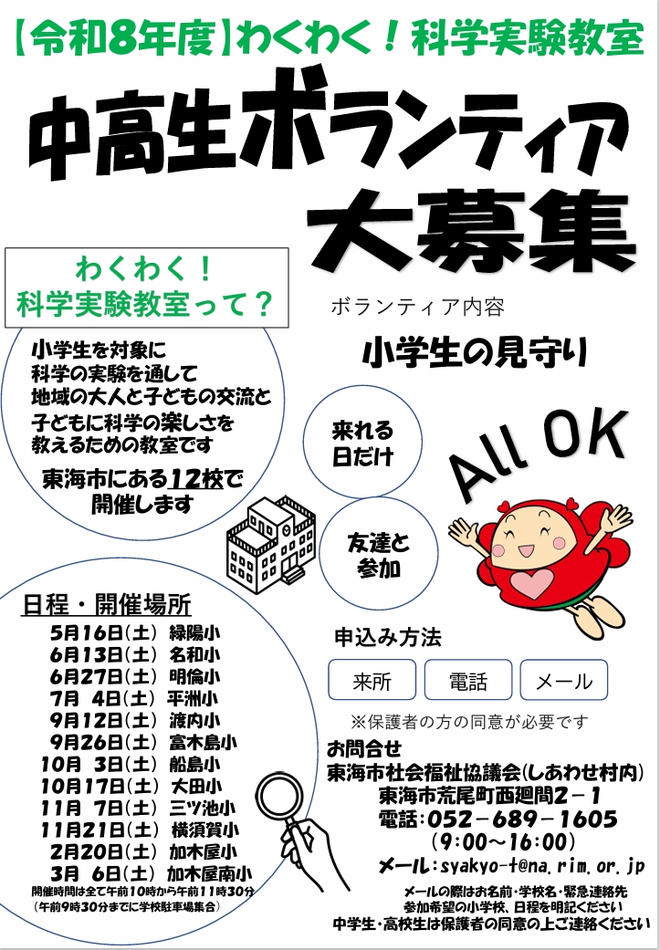 令和8年度わくわく!科学実験教室 中高生ボランティア大募集!!