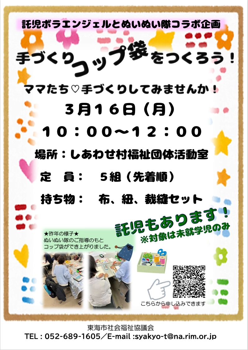 本企画は、託児ボラエンジェルとぬいぬい隊のコラボ企画です。