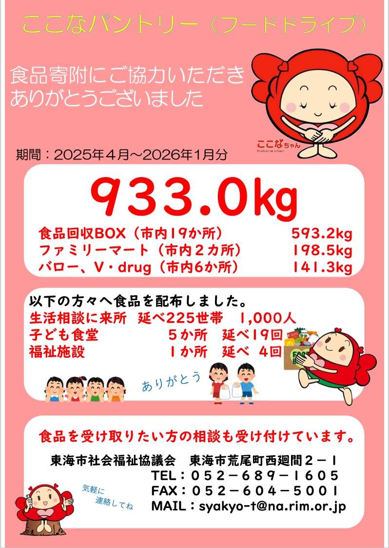 食品のご寄附についてご協力いただきありがとうございました。