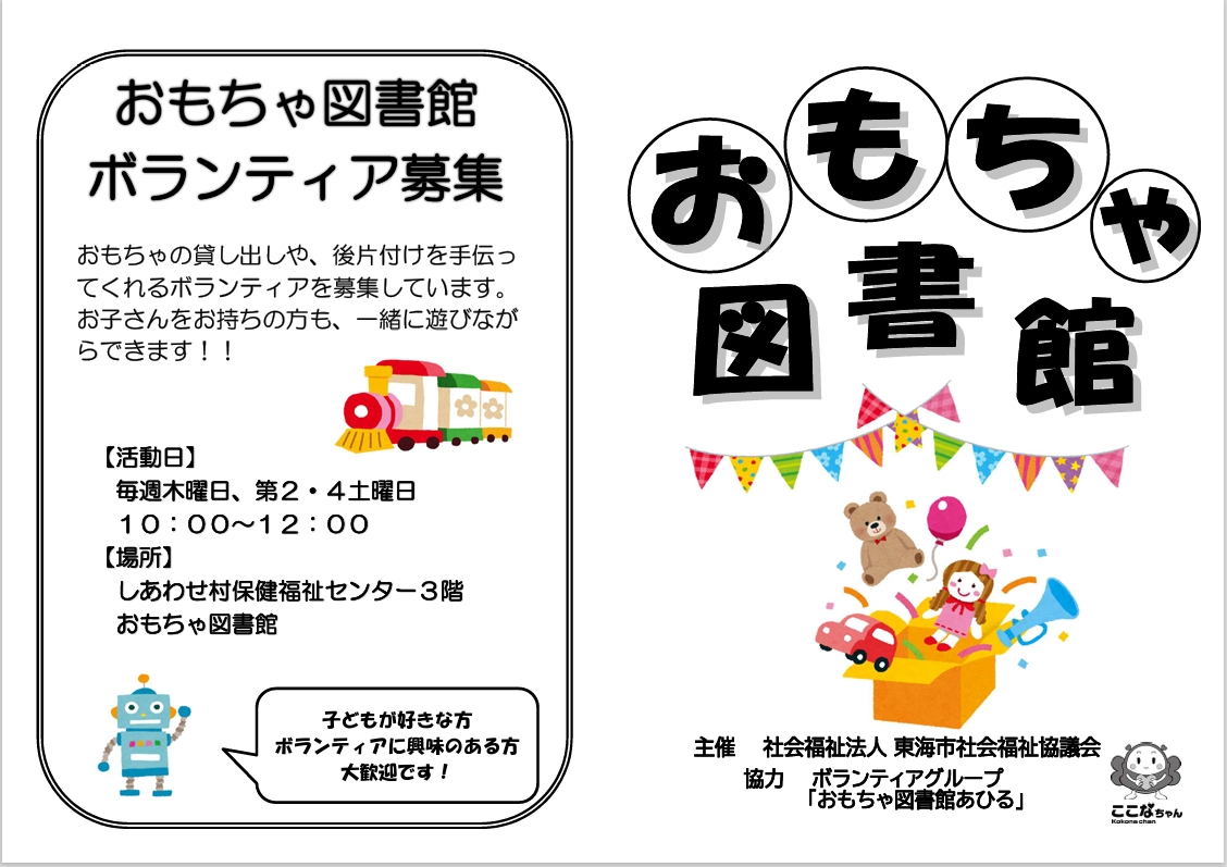おもちゃ図書館ボランティアを募集してます!