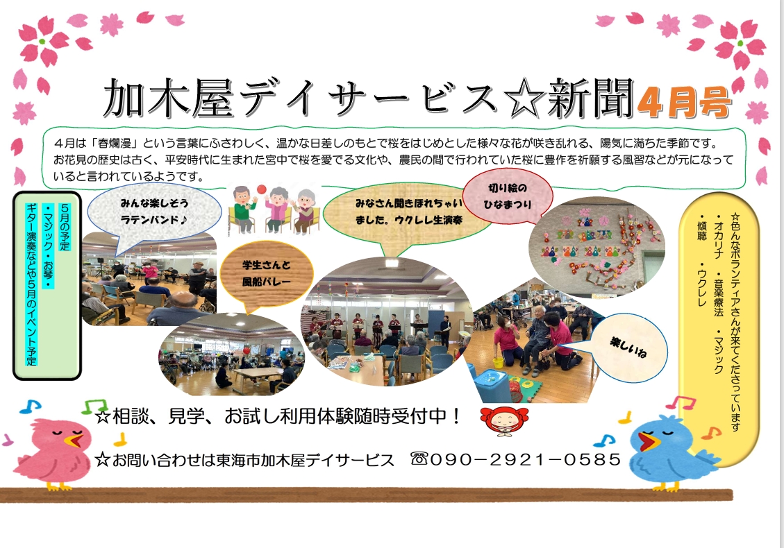 加木屋デイサービス新聞4月号はこちらをご覧ください