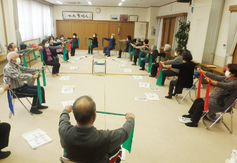 高齢者の健康づくりと介護予防を通じて地域活動へとつなげる。